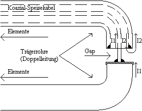 Die beste Lösung wäre jedoch gewesen, den Kapazitätsbelag am niederfrequenten Ende dadurch zu reduzieren, indem man den Durchmesser der langen Elemente verkleinern würde. So haben auch jeweils sämtliche Elemente der mir bekannten logarithmisch-periodischen Dipolantennen alle eine gleiche Stärke (siehe z.B. Bild 34).