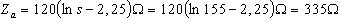 Mit einem Schlankheitsgrad von s = 155 erhält man den mittleren Wellenwiderstand der Dipole: